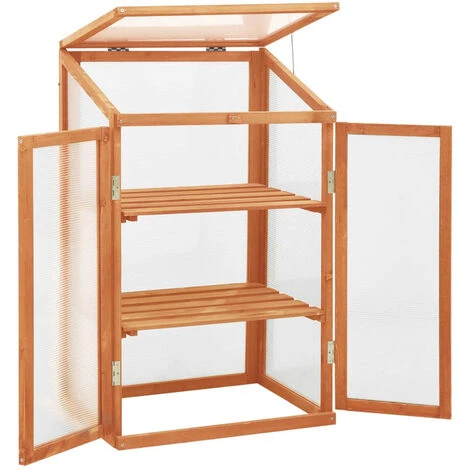 Cette serre en bois spacieuse complétera votre espace extérieur. Elle peut accueillir un nombre considérable d’herbes et sera une excellente solution pour protéger vos plantes du froid. La serre de jardin est faite de panneaux de PC et de bois de sapin solide qui la fait durable. Elle est dotée de 2 étagères qui offrent amplement assez d’espace pour vos plantes, fleurs ou herbes. Il est facile de planter ou d’enlever les plantes grâce au couvercle à charnière. Veuillez noter que le toit ne soutient pas des fortes chutes de neige.