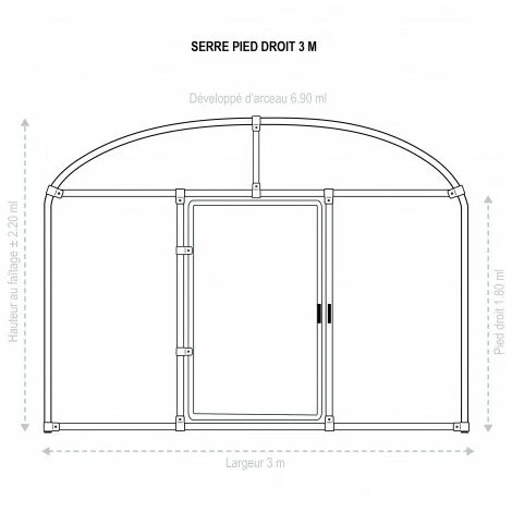 La serre tunnel pieds droits largeur 3m vous permet de cultiver fruits et légumes de votre choix. Sa bâche de couverture est configurable : thermique ou diffusante en 7 couches 200µ. Cette structure rigide (arceaux diamètre 40mm + renforts) de qualité professionnelle est fabriquée en France !