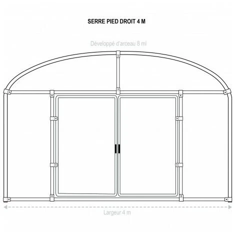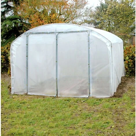 Cette serre tunnel pieds droits largeur 4m est disponible en plusieurs longueurs : de 4.5 m à 12 m. Ses pieds droits vous permettent de cultiver au plus près des parois.