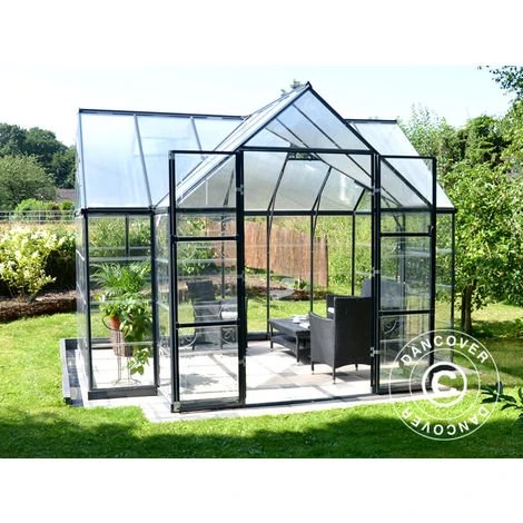 Kiosque en matériaux solides, durables et légers Un beau kiosque dispose de deux types de panneaux en polycarbonate pratiquement incassables, résistants aux chocs et flexibles. Les panneaux de toit sont en polycarbonate à double paroi qui protège contre une forte exposition au soleil. Les panneaux muraux sont en polycarbonate cristallin assurant une transmission lumineuse supérieure à 90%. Les panneaux en polycarbonate sont beaucoup plus résistants et durables que les serres traditionnelles avec des panneaux en verre. Avec une transmission de la lumière supérieure à 90%, vous ne ferez aucun compromis en ce qui concerne la croissance des plantes en choisissant le polycarbonate léger beaucoup plus fort. De plus, les panneaux de fenêtre sont faciles à monter grâce au système de panneaux coulissants uniforme. Le kiosque dispose d’une fenêtre spéciale pour la ventilation, car la température et l’humidité jouent un rôle important dans la croissance et dans le climat intérieur en général. Le kiosque élégant est livré avec une base en acier galvanisé et s’intègre parfaitement dans la plupart des jardins et prolonge la saison de jardinage de plusieurs mois.