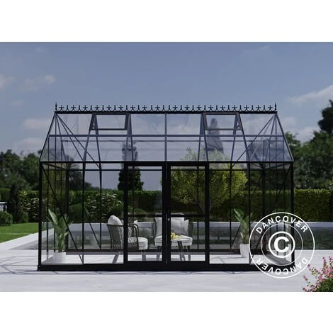 Serre, orangerie ou cadre élégant en matériaux solides et durables comme l’aluminium et le verre trempé. Le verre trempé de 4 mm d’épaisseur transmet parfaitement la lumière, ce qui vous aidera à créer les conditions de croissance idéales à l’intérieur de la serre. Les aérations du toit contribuent également à maintenir un environnement de croissance parfait, car vous pouvez les utiliser pour réguler l’humidité et la température. La double porte coulissante permet un accès facile, une bonne ventilation et peut être verrouillée à l’aide de la serrure intégrée. La serre est équipée de gouttières et de tuyaux de descente intégrés. L’élégante serre/orangerie est livrée avec une base en aluminium thermolaqué de 10 cm pour une stabilité parfaite et une hauteur supplémentaire. Que vous utilisiez cette magnifique structure comme une serre, une orangerie ou une tonnelle — ou une combinaison des deux — l’élégante construction sera partout magnifique et accueillante et prolongera la saison de jardinage de plusieurs mois.