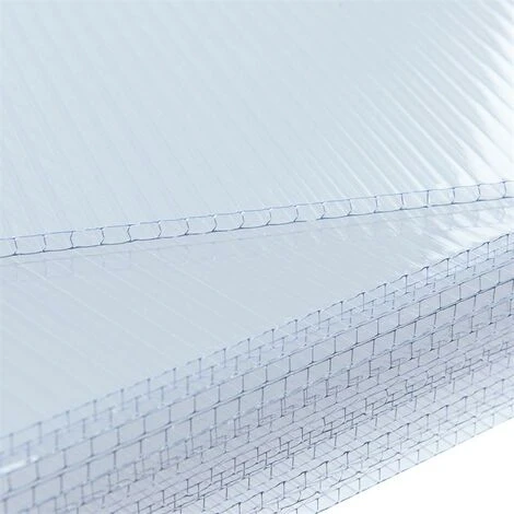 Ces plaques à double paroi sont constitué es de plaques multiparois en polycarbonate transparent de 4 mm d’ é paisseur, d’ un poids de 700 g/m² et ré sistant aux chocs. En outre, les feuilles à double toile sont ré sistantes aux intempé ries, aux rayons UV et à la chaleur. Elles ont une bonne transmission de la lumiè re et une bonne isolation thermique et sont donc idé ales pour les serres et les cadres froids. En outre, les plaques en plastique peuvent é galement ê tre utilisé es comme murs d’ intimité et de protection contre le vent, ainsi que comme toiture pour les balcons, les auvents ou les abris de voiture.