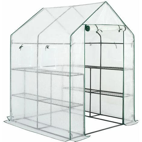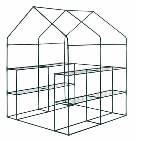 À l’intérieur de la serre avec bâche se trouvent 2 étagères enfichables avec 4 surfaces de rangement par étagère offrant beaucoup de place pour les plantes. Chaque étagère peut supporter un poids max. de 10 kg.