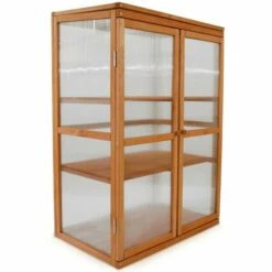 Avec la serre en bois « Printemps », vous avez la possibilité d’élever les jeunes plantes directement sur trois niveaux. Trois étagères en bois (1er étage, 2ème à 37 cm de hauteur, 3ème à 70 cm de hauteur) offrent un espace suffisant pour grandir. Les deux portes avant pratiques avec fermeture magnétique puissante garantissent une accessibilité optimale. Pour la ventilation, le toit peut être arrêté avec un support robuste en bois et assure ainsi une ventilation correcte.