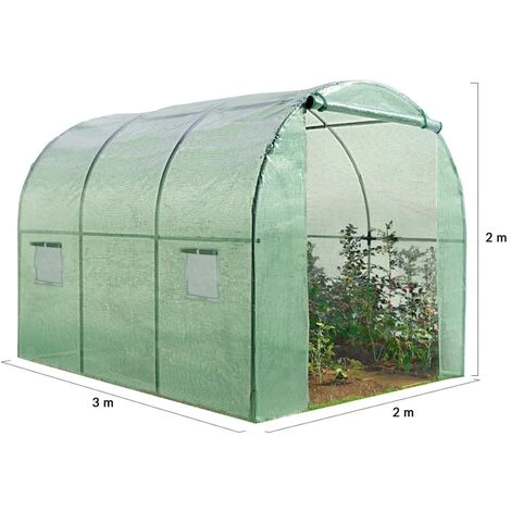Descriptif de la serre de jardin ROMA verte 6 M²Envie de crĂ©er votre propre culture de fruits et lĂ©gumes dans votre jardin ? Craquez pour cette serre de 6M² qui vous permettra de rĂ©colter de bons fruits et lĂ©gumes en toutes saisons !Cette serre de jardin est composĂ©e de 2 sections formĂ©es par 4 arceaux en acier galvanisĂ© et sa bâche armĂ©e de 130 gr/m² est indĂ©chirable et anti-UV. Tous ces critères font de cette serre, un produit stable et robuste. Pratique et fonctionnelle, cette serre de 6m² verte s’adapte Ă toutes les situations : que ce soit pour abriter des fleurs, faire pousser vos fruits et lĂ©gumes ou encore pour ranger vos outils. Sa large porte zippĂ©e et ses 2 fenĂŞtres Ă moustiquaires de 35 x 35 CM offrent une aĂ©ration maximale tout en protĂ©geant vos cultures des insectes et autres bĂŞtes nuisibles. Avec une telle conception, cultivez plus tĂ´t, plus vite mais aussi plus tard en saison !Alors n’hĂ©sitez plus et offrez des conditions idĂ©ales au dĂ©veloppement de vos plants grâce Ă cette serre de jardin verte 6m² et sa bâche de 130 gr/m² ! Dimensions de la serre tunnel de jardin 3x2M- Dimensions totales de la serre : Longueur 3 M x largeur 2 M x Hauteur 2 M- Structure 4 arceaux en acier galvanisĂ©- Diamètre des tubes : 16 MM- LivrĂ©e avec une bâche renforcĂ©e verte anti-UV 130 gr/m² en polyĂ©thylène- 2 fenĂŞtres 35 x 35 CM avec filet moustiquaire- 1 porte d’entrĂ©e zippĂ©e avec 6 crochets en plastique verts pour relever la bâche- Dimensions de la porte : largeur 80 x Hauteur 180 CM- Connexion plastique pour assembler les tubesRetrouvez cette serre de jardin mais en option relevable : – Serre tunnel de jardin 4 saisons 6M² verte 4 arceaux gamme maraĂ®chère ROMA 2x3MDĂ©couvrez Ă©galement toutes nos serres de jardin sur notre boutique en ligne !