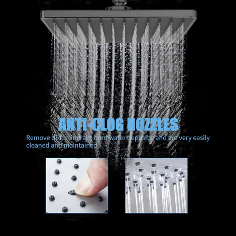La pomme de douche carrée est faite d’un matériau ABS de qualité supérieure et d’une finition chromée polie, et elle est anti-corrosion, antirouille et durable. Les buses autonettoyantes peuvent empêcher le calcium naturel de s’accumuler pour éviter le blocage. Le pommeau de douche à haute pression est conçu avec la technologie d’économie d’eau et de pressurisation la plus avancée, vous offrant une expérience de douche réconfortante.