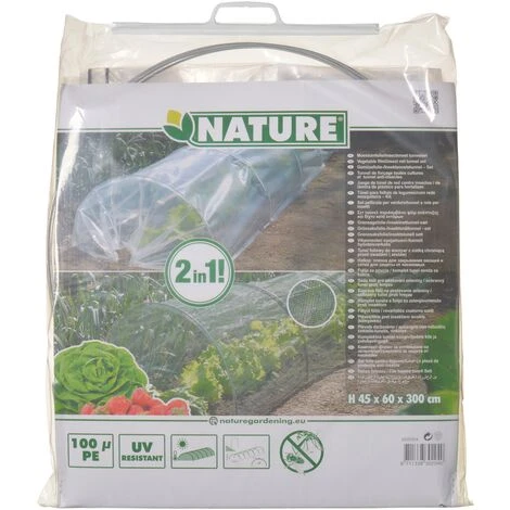 Facile Ă installer, le kit tunnel duo 2-en-1 se compose d’un film transparent et d’un voile anti-insectes. La largeur du tunnel est de 60 cm, la hauteur est de 45 cm et la longueur est de 300 cm. La hauteur de +/- 50 cm permet d’abriter des lĂ©gumes assez hauts jusqu’à la rĂ©colte. Il se pique en terre au-dessus des semis. Le tunnel 2-en-1 protège les rĂ©coltes des insectes, des oiseaux, mais aussi du vent, du gel, … Utilisation facile.