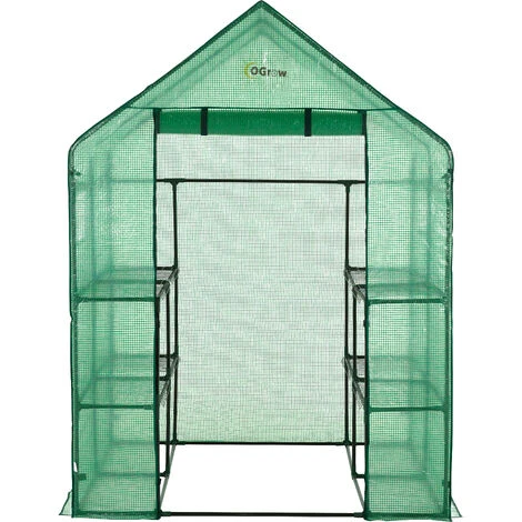 Si vous ĂŞtes un amateur de jardinage et que vous souhaitez faire pousser des lĂ©gumes, plantes et fleurs toute l’annĂ©e, cette mini serre de jardin Ogrow 142,3 cm x 142,3 cm x 195,6 cm / 56 x 56 x 77 pouces (Largeur / Profondeur / Hauteur) à 2 niveaux avec un total de 8 Ă©tagères est parfait pour vous. Nos serres de jardin sont bon marchĂ©, lĂ©gères et faciles Ă assembler. Aucun outil nĂ©cessaire pour l’assemblage! Conçu avec des connecteurs en plastique spĂ©ciaux de haute qualitĂ© pour un assemblage facile. Cette tente est parfaite pour votre jardin, potager, pelouse et arrière-cour! Le cadre robuste enduit de poudre vert foncĂ© pour la protection contre la rouille offre un soutien suffisant pour les casseroles et les poĂŞles. Le couvercle en polyĂ©thylène vert rĂ©sistant avec emballage intĂ©grĂ© permet un accès facile aux intĂ©rieurs oĂą se trouvent des Ă©tagères solides pour les vases et les plateaux. La serre de jardin d’hiver se connecte avec des lacets offrant ainsi une plus grande durabilitĂ©. Cet abri pour lĂ©gumes, plantes et fleurs a une couverture durable qui garantit des annĂ©es d’utilisation et ne se dĂ©colore pas ni ne se fissure au soleil. Ce modèle de plain-pied permet la croissance de plantes succulentes, a de grandes dimensions et un accès et une ventilation faciles. L’achat comprend des instructions de configuration et d’entretien claires. Lorsque la saison chaude arrive, cette petite serre de jardin est l’endroit idĂ©al pour un jardinier. Notre serre portable comprend un système d’ancrage. Les ancres fixeront cette serre en plastique au sol Ă l’aide de cordes solides et d’ancrages lourds qui assureront la robustesse mĂŞme dans les pires conditions mĂ©tĂ©orologiques!