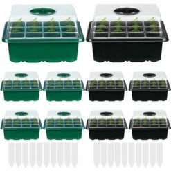 Ce que vous obtenez – Le plateau de dĂ©marrage pour graines contient : 10 x plateau de semences, 10 x plateau infĂ©rieur (5 verts et 5 noirs), 10 x dĂ´me d’humiditĂ© (5 verts et 5 noirs), 2 x outils de jardinage, 20 x Ă©tiquettes de plantes (indispensables pour les semis).