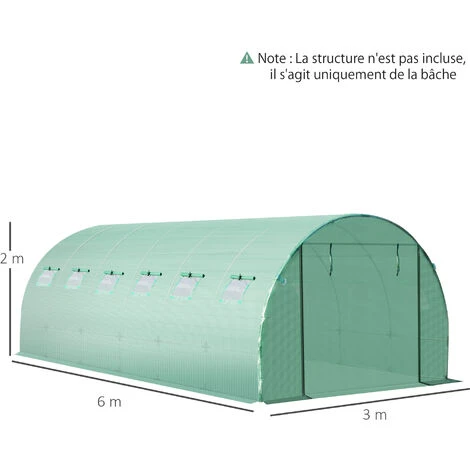 – Bâche de rechange serre tunnel de jardin dim. 6L x 3l x 2H m