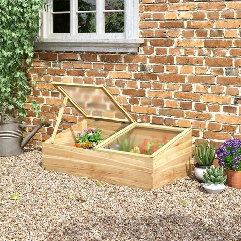 Cette jolie mini serre de jardin avec double toit ouvrable sĂ©paremment vous permettra de protĂ©ger vos plantes, lĂ©gumes, semis, etc. durant l’hiver et le printemps. Sa conception et fabrication en bois de sapin prĂ©-huilĂ© et panneaux de polycarbonate vous assureront protection et rendement. CaractĂ©ristiques : – Mini serre de jardin mĂ©lant sobriĂ©tĂ© et Ă©lĂ©gance – Conception et fabrication de qualitĂ© en bois de sapin prĂ©-huilĂ© et panneaux de polycarbonate pour protĂ©ger vos plantes, lĂ©gumes, semis, etc… et ainsi optimiser leur rendement – Double toit ouvrable indĂ©pendemment avec compas pour chacun : ventilation optimale, entretien plus facile de vos plantes – Toits en pente favorisant l’Ă©coulement de l’eau de pluie – Panneaux alvĂ©olaires de polycarbonate transparent favorisent la diffusion permanente de la lumière du soleil et la croissance de vos plantations – Montage facile, rapide Ă l’aide du manuel d’assemblage illustrĂ© fourni SpĂ©cifications : – Couleur : bois de sapin prĂ©-huilĂ© – MatĂ©riaux principaux : bois de sapin, panneaux de polycarbonate – Dim. totales : 100L x 50l x 36H cm – Hauteur avant : 24 cm – Dim. de chaque toit : 53L x 50l cm – Dim. espace interne de plantation : 97L x 48l cm – Epaisseur panneau polycarbonate : 4 mm – CapacitĂ© de charge max. de neige : 30 kg/m² – Livraison effectuĂ©e en un colis – RĂ©f : 845-538ND