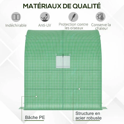 – Bâche verte semi-transparente en polyéthylène imperméable anti-UV haute densité 140g/m² rallongée de 15 cm pour un meilleur maintien au sol