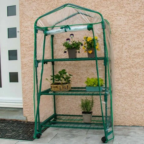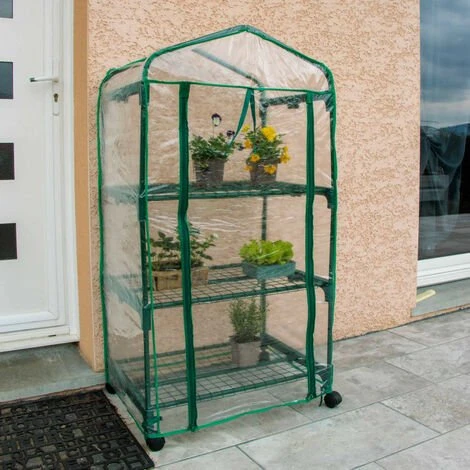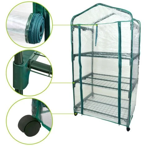 Peu encombrante, cette petite serre de jardin de 69x49x125 cm se déplace facilement avec ces quatre roulettes en plastique. Elle convient à la majorité des balcons et terrasses.
