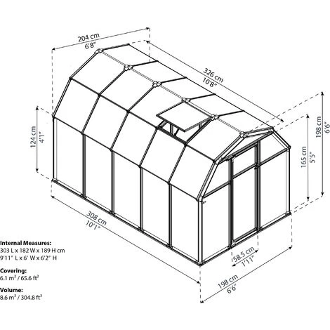 - Epaisseur du polycarbonate : Toit : 4 mm / Parois : 6 mm