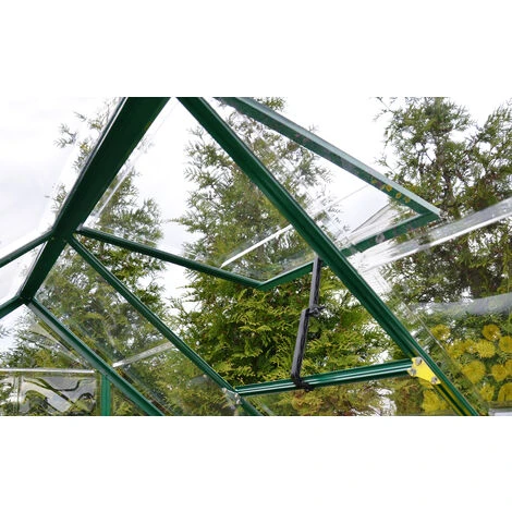 La serre Harmony est livrée avec une base pour assurer la stabilité de la structure, une porte avec charnière et une lucarne pour assurer une ventilation efficace.