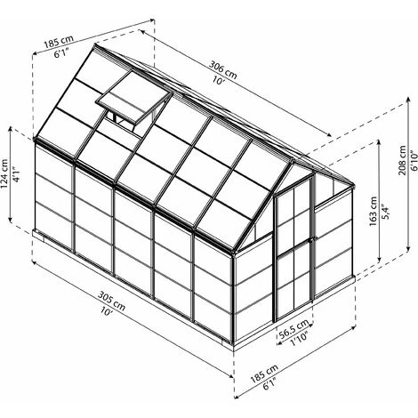 Serre de jardin en polycarbonate 306P x 185L x 208H cm