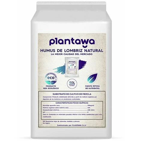 L’ humus de ver Plantawa 50L est un compost de haute qualité qui contient jusqu’à 11 fois plus de calcium, de magnésium, d’azote, de phosphore et de potassium qu’un sol sain normal. Il offre une productivité élevée et est très facile à utiliser. Il convient à tout type de plante et de culture. C’est un humus de ver 100% pur .