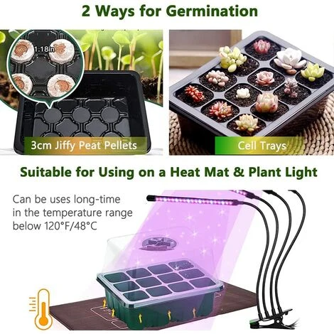 Petits trous au fond de chaque cellule Le dessus de la graine est considĂ©rablement amĂ©liorĂ©, avec un plateau en dĂ´me Ă humiditĂ© rĂ©glable, qui peut ĂŞtre ouvert ou fermĂ© pour ajuster l’humiditĂ© et la tempĂ©rature du sol afin d’assurer la tempĂ©rature appropriĂ©e du sol