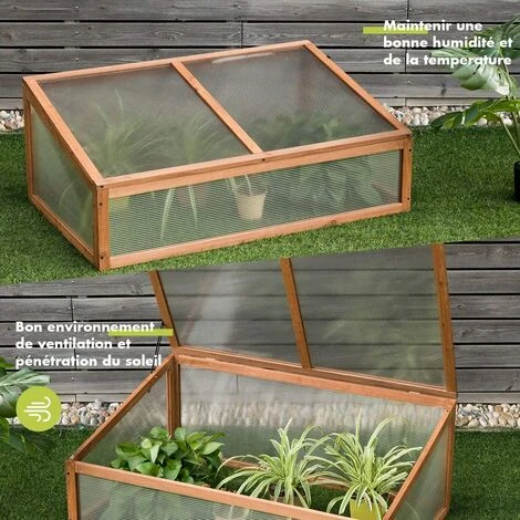 - ★STRUCTURE STABLE ET DURABLE★ Cette mini serre moderne est fabriquée avec une structure en bois massif, en épicéa naturel, ce qui la rend très stable et solide. Avec le vernis transparent sur la surface, il est imperméable et résistant à l’usure, en plus, il offre un toucher lisse et confortable.