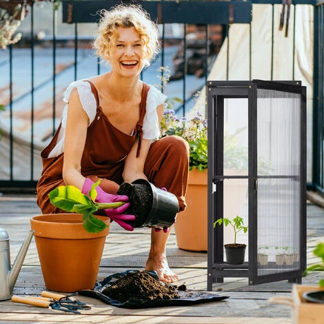 Cetteserre en bois est une aide précieuse pour tous les jardiniers amateurs quisouhaitent cultiver et faire pousser des plantes. Les plaques translucides àdouble paroi fournissent suffisamment de lumière et la porte et le couvercleouvrable assurent un apport d’air optimal et un accès pratique. Cette serre enbois solide offre une protection contre le vent, les précipitations et le gel,afin qu’une grande variété de plantes puissent pousser et s’épanouir. Grâce àsa taille compacte, la serre pour plantes est également parfaite pour lespetits balcons.