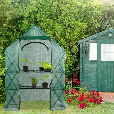 Vous pouvez également ôter des étagères pour les plantes plus grandes. La bâche verte vous protège du vent, de la pluie et du soleil mais également des insectes nuisibles. Le plus de cette serre de jardin, c’est que vous pouvez la démonter très facilement.