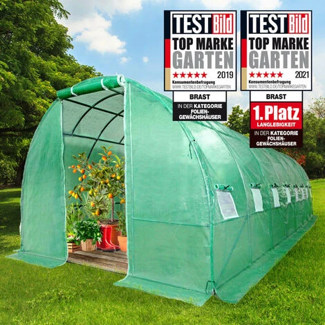 Le magazine de test-produits allemand le plus sévère, TESTBILD, nous a décerné le prix TOP MARKE GARTEN 2019 avec 5 étoiles pour nos serres à film BRAST, ceci en termes de qualité, durabilité, fonctionnalité, design, viabilité et relation qualité/prix. Grâce au nouveau film amélioré, nous avons atterri également à la 1ère place de nouveau en 2021 avec 5 étoiles (durabilité) !