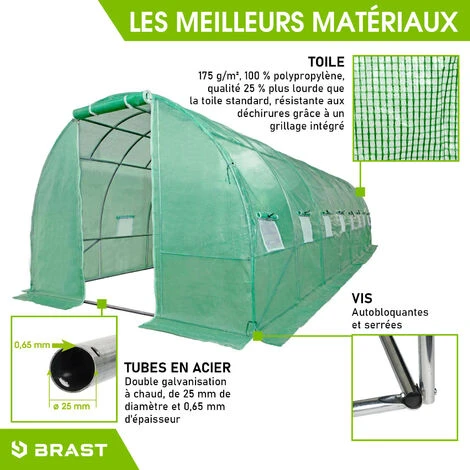 - La serre BRAST est équipée de rails inférieurs en acier tout autour, ce qui lui confère une stabilité supplémentaire.