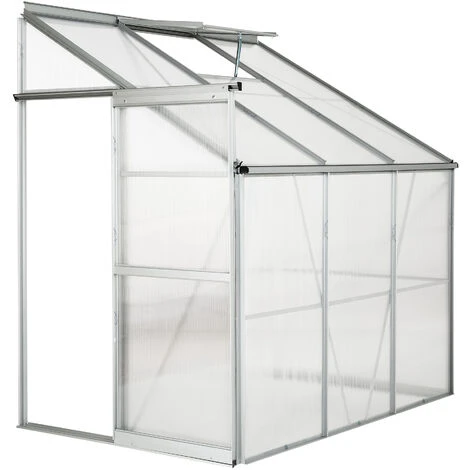 Serre de Jardin, Serre de Jardinage, Abri de Jardin Adossée 4,09 m³ en Aluminium 192 cm x 128 cm x 202 cm TECTAKE. • Cette serre de jardinage très pratique est idéale pour être adossée à votre maison, à un mur de votre jardin ou à une remise. • Plantez simplement vos légumes, vos fruits et vos herbes aromatiques et affranchissez-vous des contraintes de saison. • Notre abri de jardin offre une protection parfaite contre les conditions météorologiques. • Il protège efficacement vos cultures contre la pluie, le rayonnement extrême du soleil ou les dommages causés par les oiseaux. • La lucarne assure une bonne aération. • Le châssis résistant en aluminium anodisé, les plaques creuses résistantes aux UV et la lucarne de toit viennent parachever le profil de cette serre de qualité.