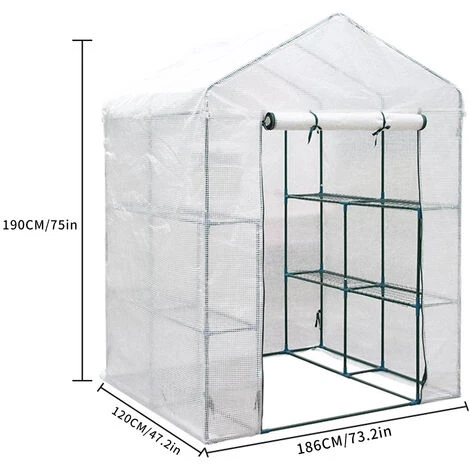 La structure du cadre en acier peint par poudrage est stable et solide. Le film durable est fait d’un matériau PE résistant à la déchirure et aux UV. Il est durable et protège les plantes du gel.