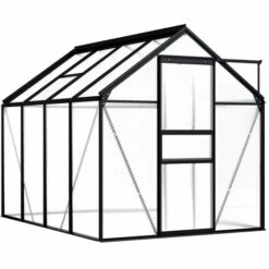 Cette serre spacieuse a une surface totale de 4,75 m². Elle peut accueillir un nombre considérable de plantes et sera une excellente solution pour protéger vos plantes du froid. Fabriquée en panneaux de polycarbonate, cette serre solide est résistante aux UV et isolée thermiquement. La serre a une construction en aluminium robuste et sans entretien pour plus de stabilité. Le système de gouttière permet efficacement l’évacuation de l’eau, et l’évent de toit assure une ventilation optimale par temps chaud. Les panneaux de toit sont fixés avec des clips métalliques, garantissant sa durabilité et son utilisation à long terme. Notre serre est facile à assembler. Veuillez noter que la fondation n’est pas incluse ; et le toit de notre serre ne peut pas supporter de fortes chutes de neige.