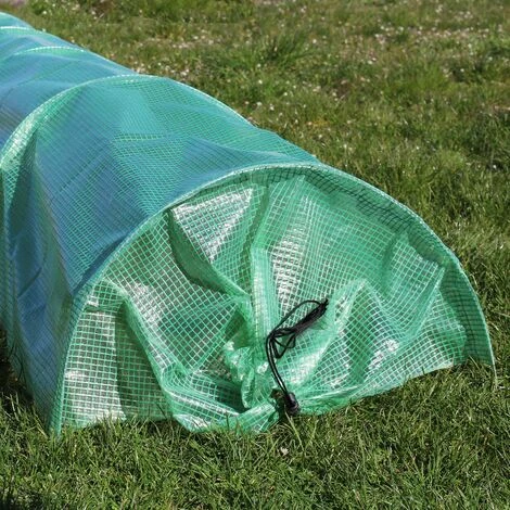 Le tunnel ayant les dimensions 300x65x45, est équipé de 6 fils d‘acier qui lui confèrent hautes stabilité et résistance. La bâche solide de 130 g/m², fabriquée en polyéthylène résistant aux rayons UV constitue également une protection fiable contre la pluie, le vent, le froid et la grêle, tout en assurant un ensoleillement régulier et donc un climat intérieur idéal pour la croissance. Vous pouvez par ailleurs accéder à l’intérieur des deux cotés de la serre. Cet avantage garantit une ventilation optimale et par conséquent, une récolte abondante en fruits et légumes. Les deux accès latéraux sont assez larges et s‘ouvrent et se ferment facilement.